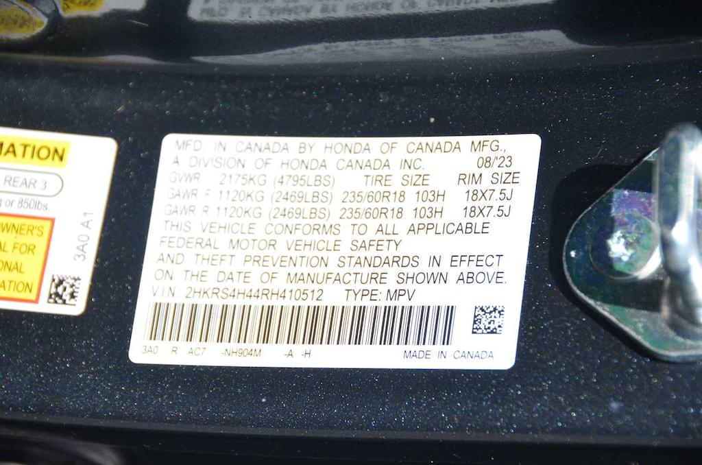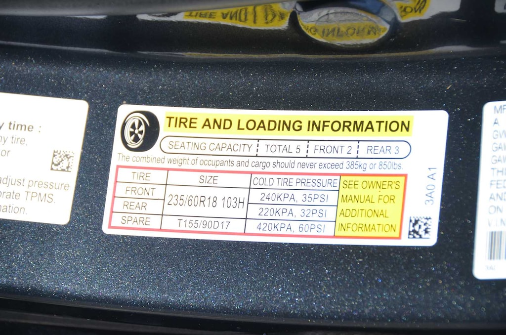 - Rear tires: 235/60HR18.0