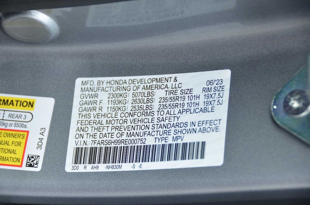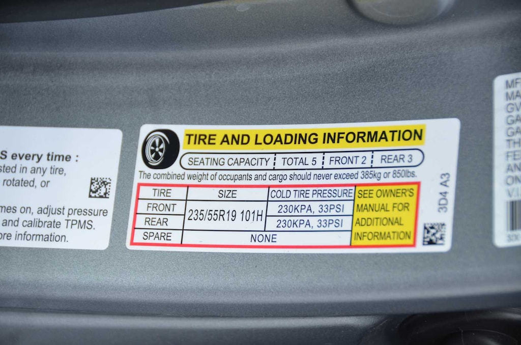 - Rear tires: 235/55HR19.0