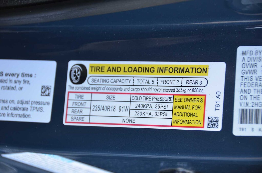 - Front tires: 235/40WR18.0