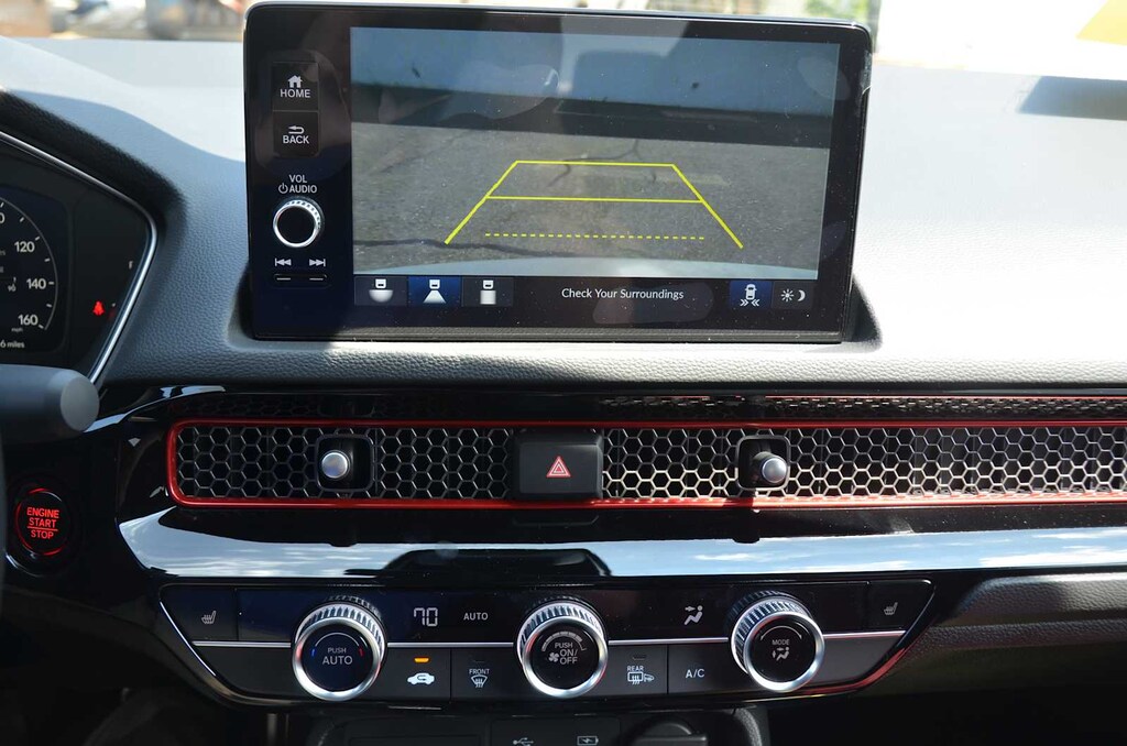 NAV, Heated Seats, Alloy Wheels, Turbo, Back-Up Camera, Moonroof. Civic trim, Urban Gray Pearl exterior and Black/Red interior.