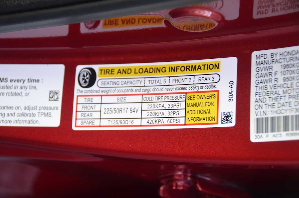 - Front tires: 225/50VR17.0