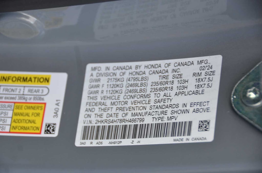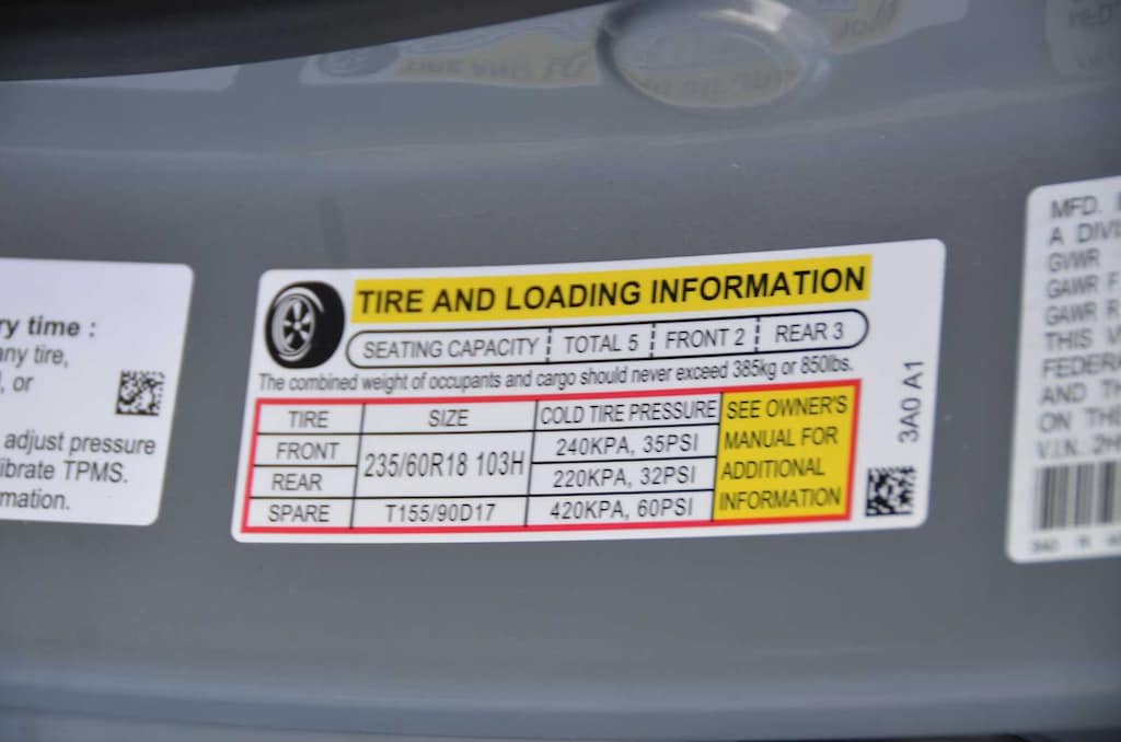 - Rear tires: 235/60HR18.0