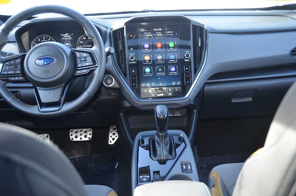 Back-Up Camera, Heated Driver Seat, Satellite Radio, iPod/MP3 Input, Onboard Communications System Subaru Sport with Crystal White Pearl exterior and Gray w/Yellow Stitching interior features a 4 Cylinder Engine with 182 HP at 5800 RPM*.